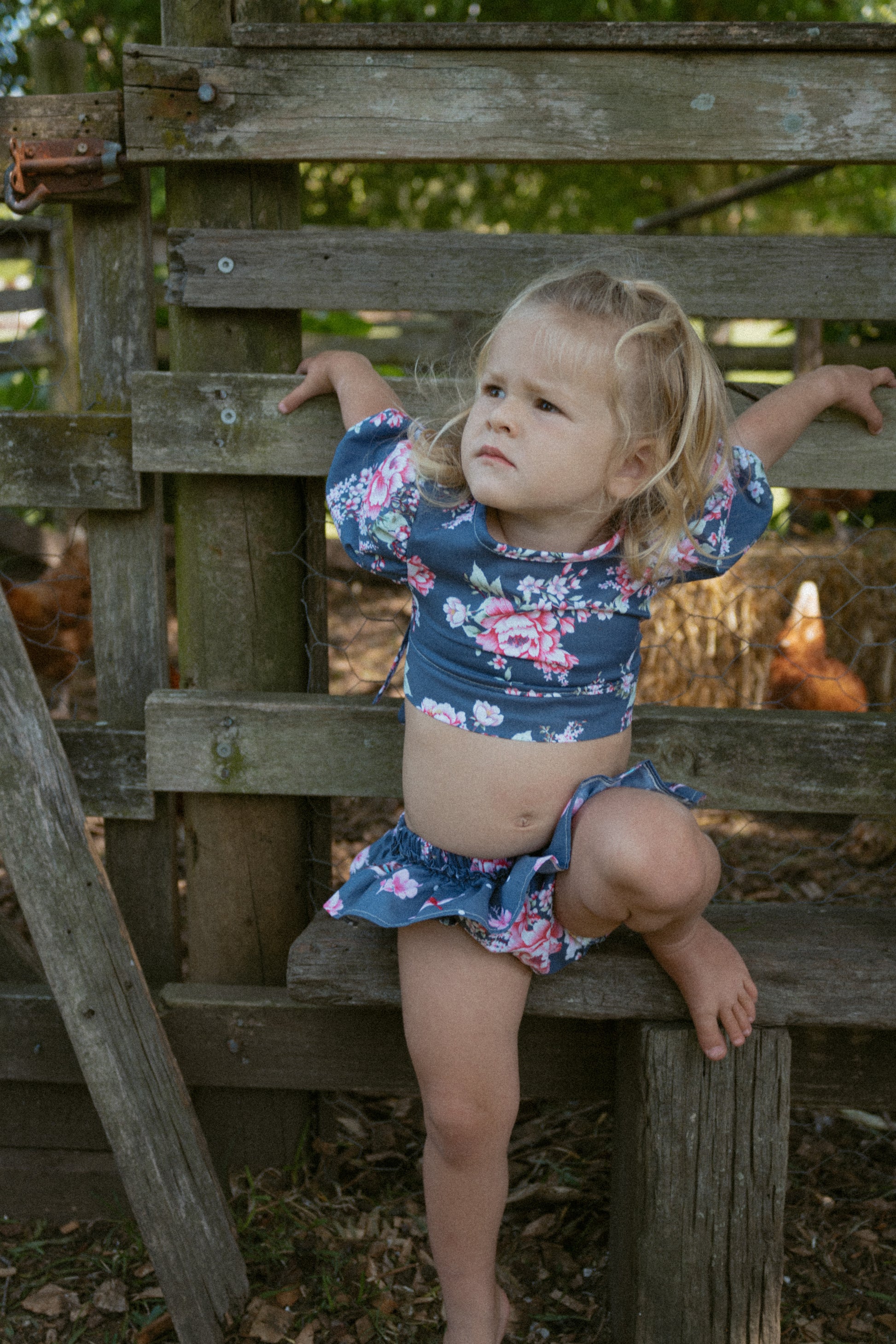 - Cute bloomer in floral navy/pink fabric with dragonfly patterned fabric frill