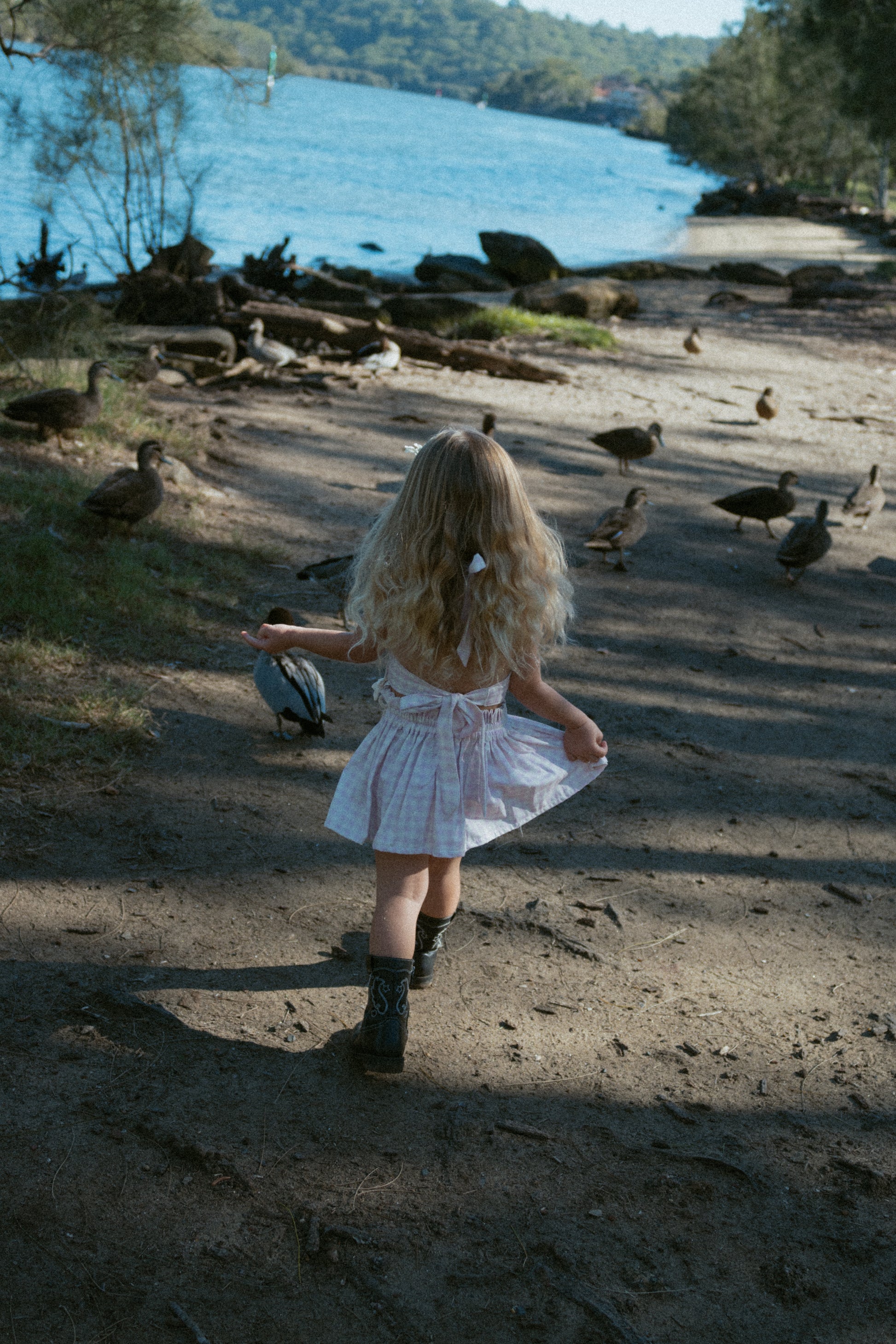 - Teamed here with our Petals reversible halter top. One side is solid pink and the other in pink gingham.