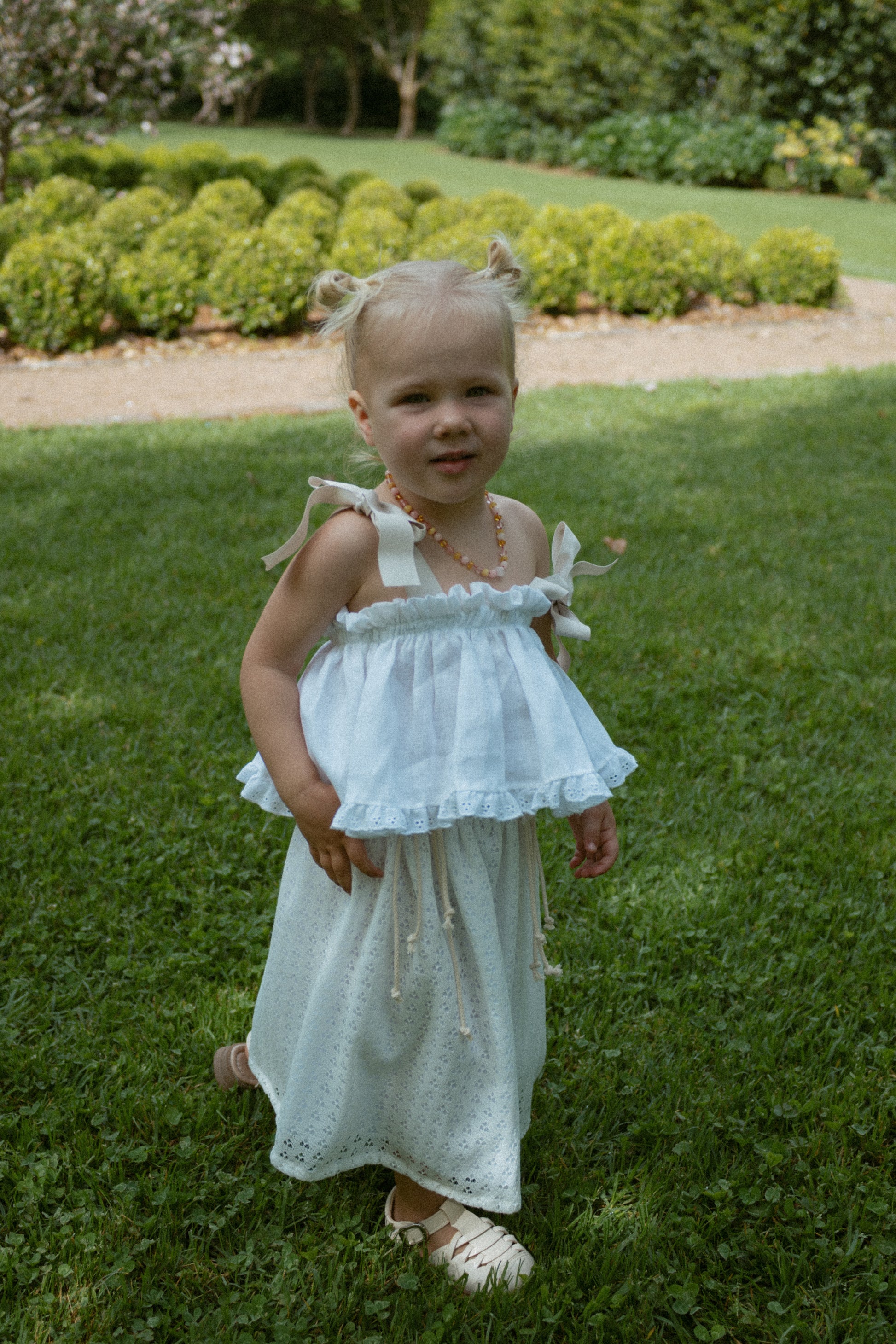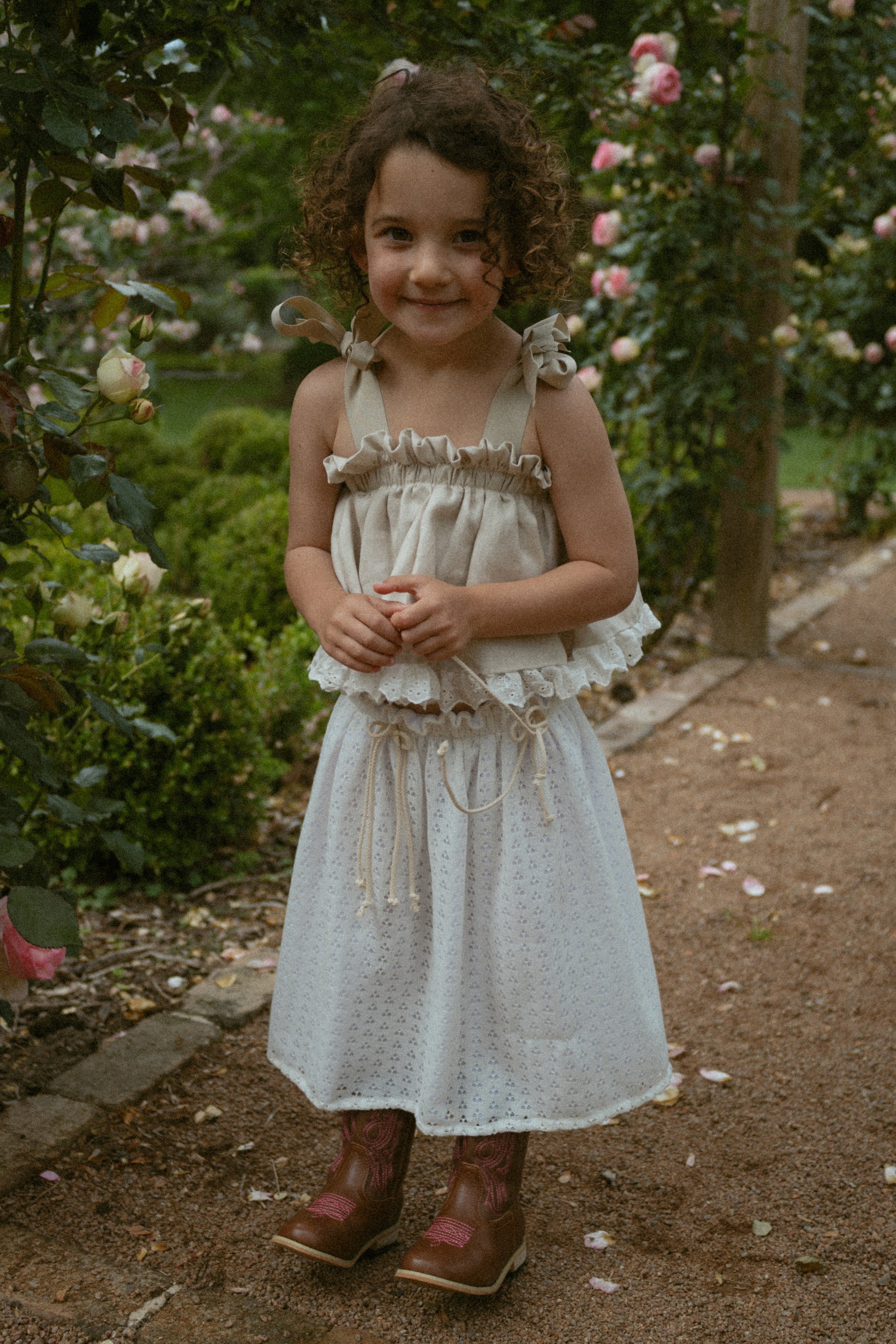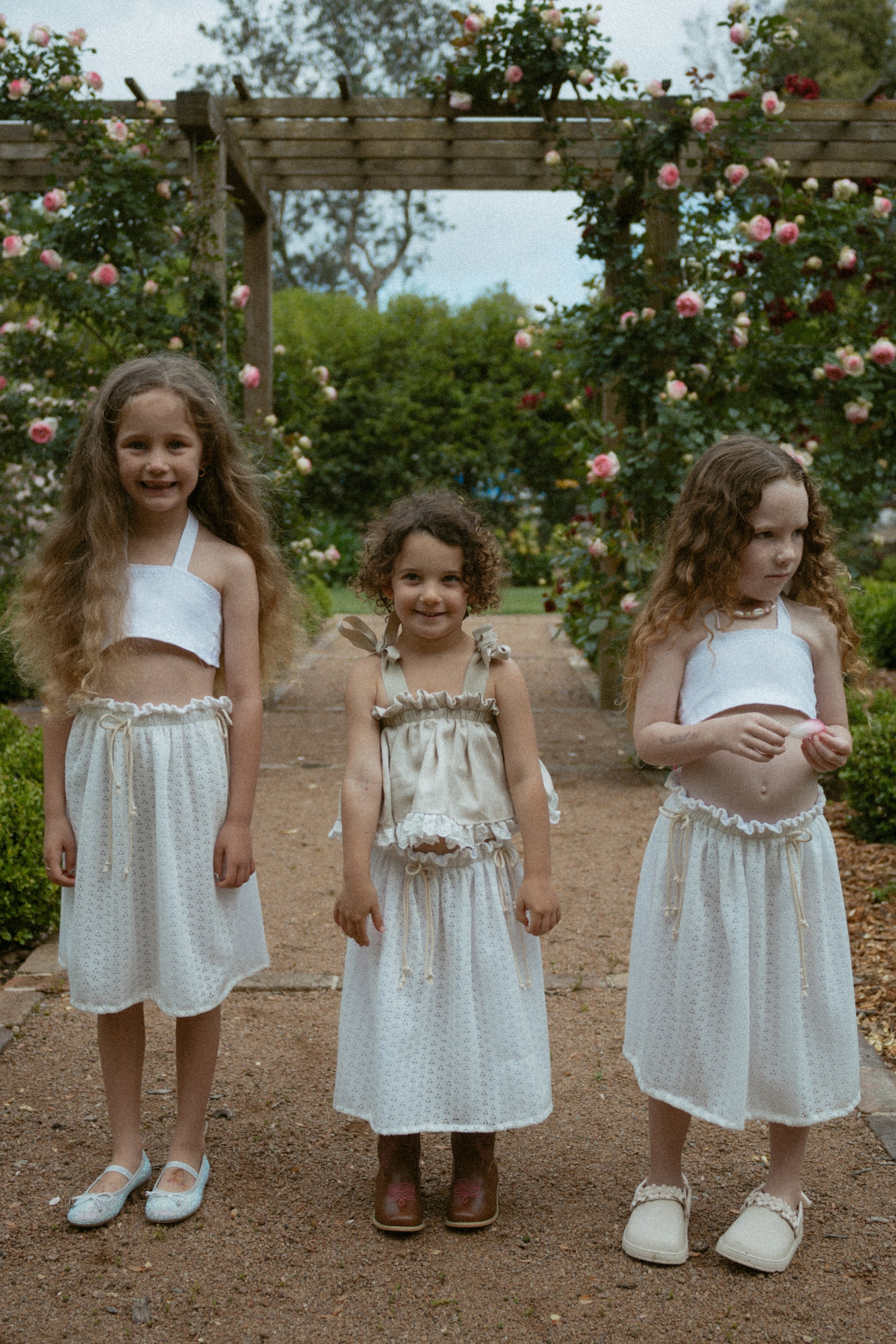 - We've styled it here with our Powder Puff white linen flounce top, our Powder Puff Oatmeal linen flounce top and Daisy Chain white linen bandeau